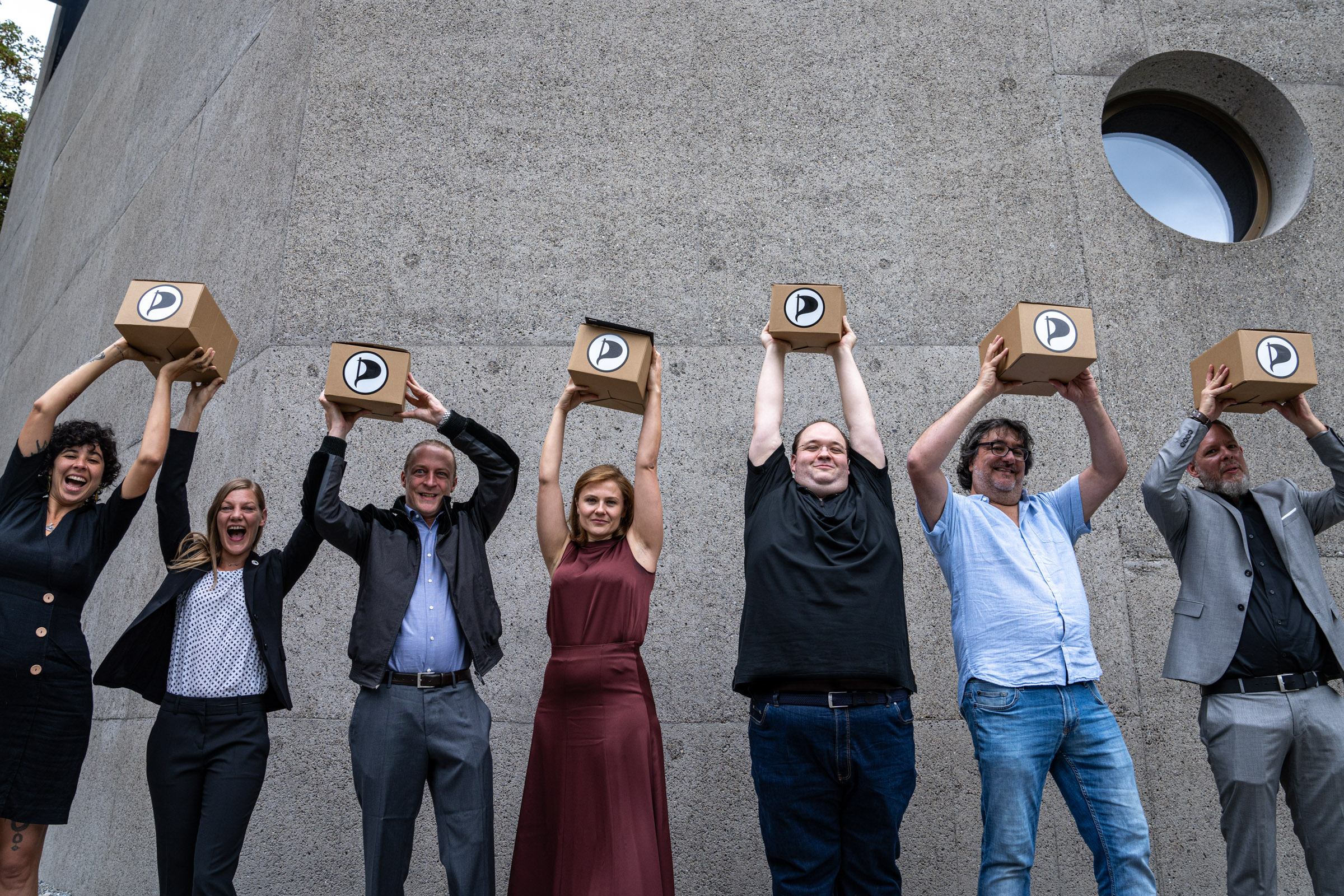Die Piratenpartei reicht die Unterschriften der Volksinitiative Digitale Integrität im Kanton Zürich ein. Foto: Pascal Fouquet